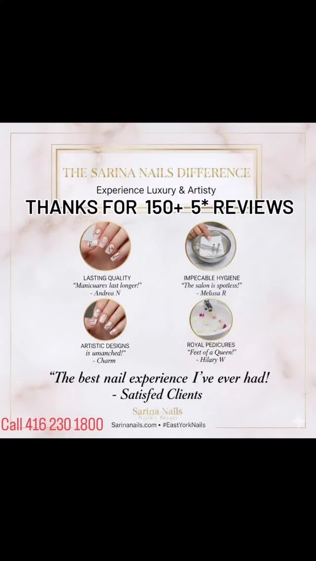 Discover why our clients consistently rate us 5 stars. Quality service, attention to detail, and a relaxing atmosphere await you at Sarina Nails & Beauty.